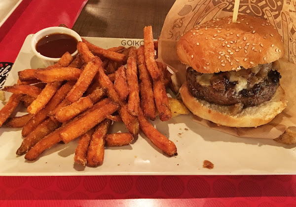 Con todas las hamburguesas puedes elegir como acompañamiento patatas rústicas o chips de boniato, probamos ambos y están muy ricos, pero quizás nos quedamos con los chips de boniato porque son más originales y diferentes.
