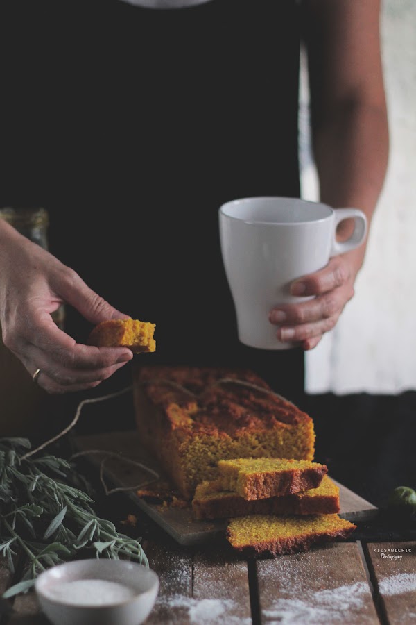 El golden latte loaf cake es un bizcocho especiado, de color mostaza, con mucho sabor a especias y hecho con harina fina de maíz. Este tipo de bizcocho cortadito en rebanadas y tostadito te lo tomas para desayunar y vas a ver que cosa más buena.