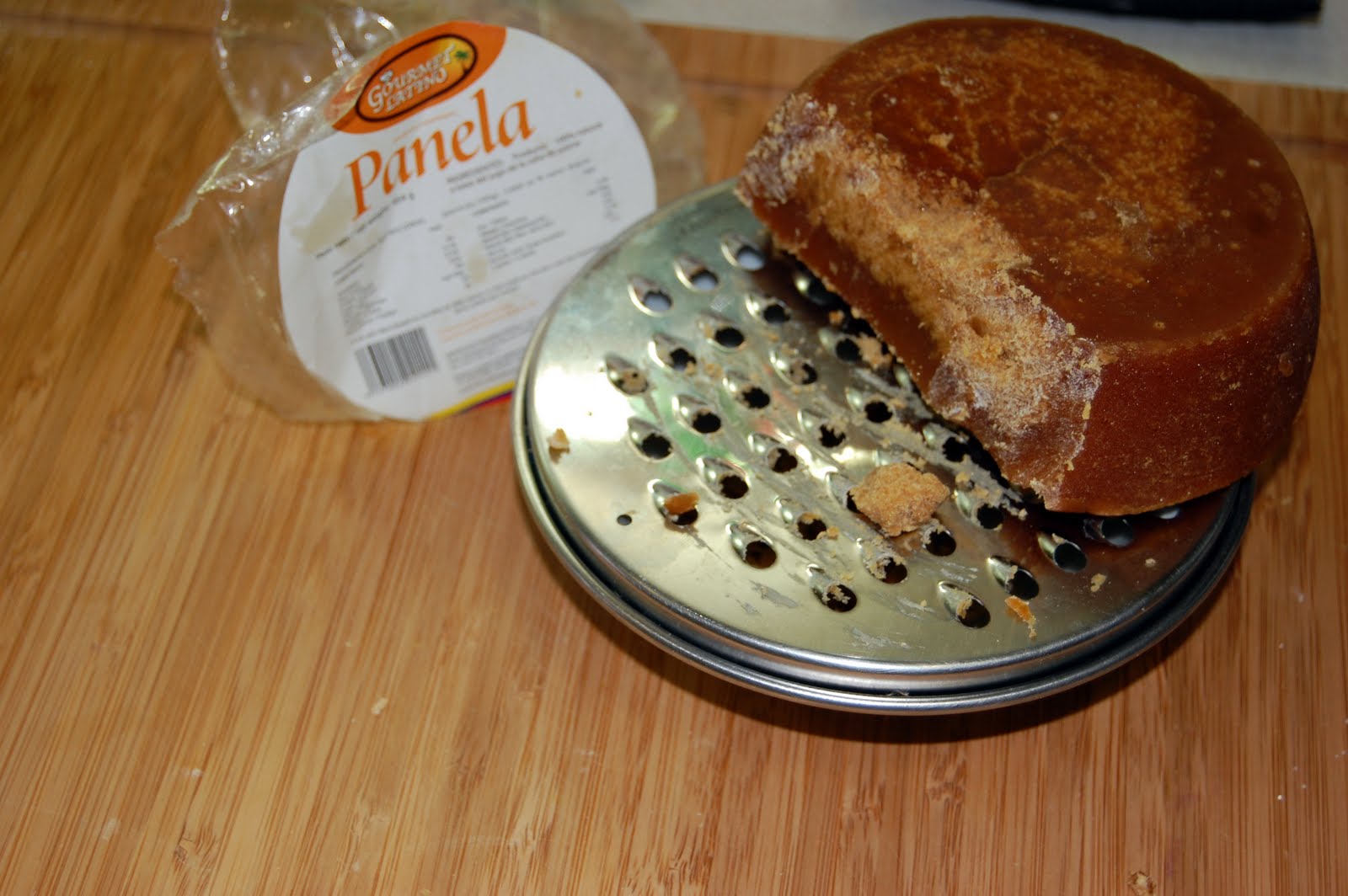 Mientras tanto si hemos conseguido la panela, rallamos la cantidad suficiente, aunque ya la venden rallada en el hipermercado en la sección de productos latinos.