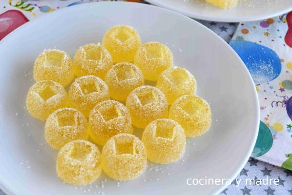 Ahora tan solo nos queda pasar cada gominola casera y muy fácil por azúcar y lista.