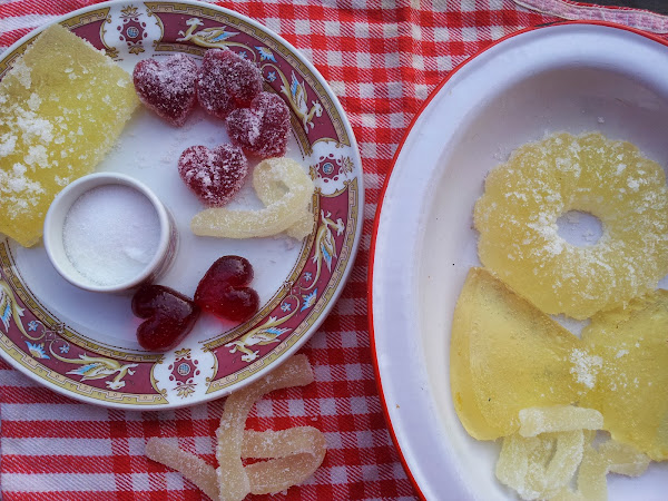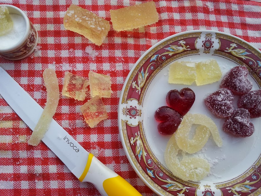 Bueno pues como el año pasado pensé en hacer gominolas con el almíbar que se obtiene después de la elaboración. Las hice y quedaron muy ricas, con un sabor indeterminado, porque cocí varias frutas distintas, incluso calabaza, pero muy apetecibles. Así que este año no iba a ser menos. Además es tan fácil...
