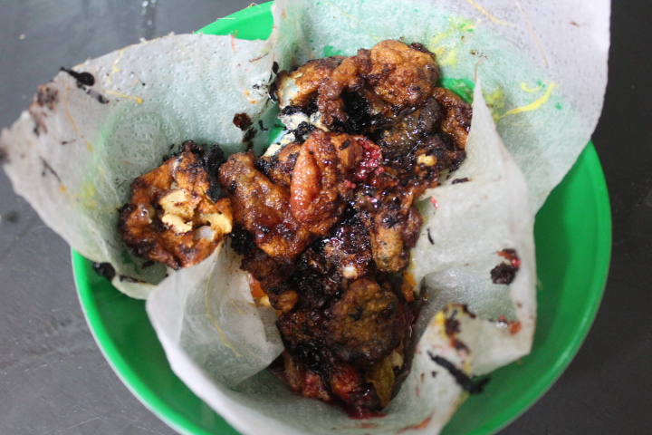 Freímos las gominolas, rápidamente, de una en una (yo metí varias en la sartén, por eso se me fundieron) y las retiramos a un recipiente con un papel de cocina en el fondo para que absorba el sobrante de aceite.
