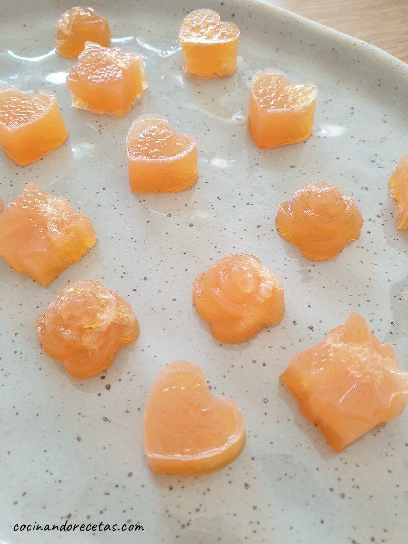 Para obtener la textura similar a la de las golosinas convencionales hay que usar la cantidad indicada de agar-agar, ya que de lo contrario quedarán unas gominolas muy compactas.