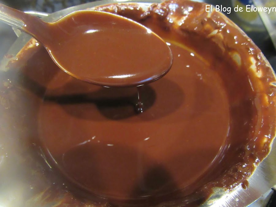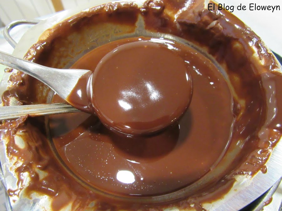 Una vez se haya derretido el chocolate, apagad el fuego, pero os recomiendo que no quitéis el recipiente con el agua caliente de debajo. De esta forma, el chocolate se mantendrá líquido durante más tiempo.