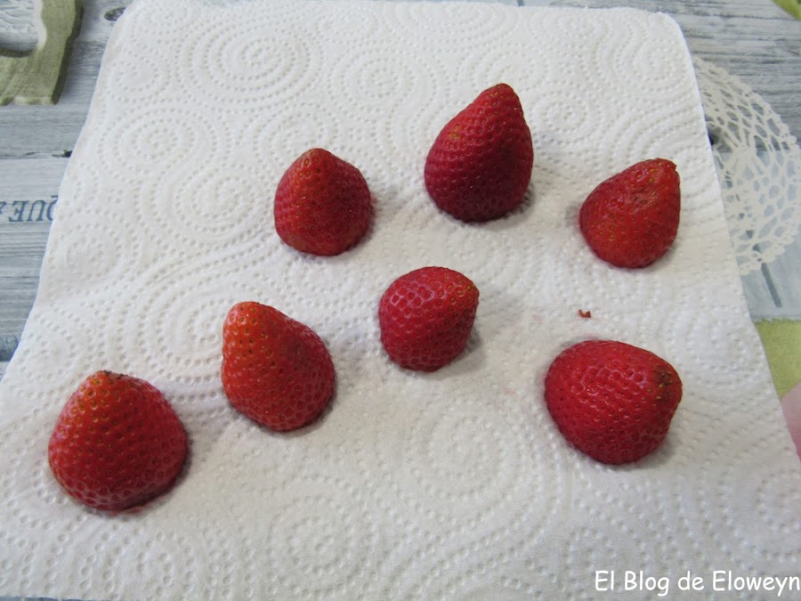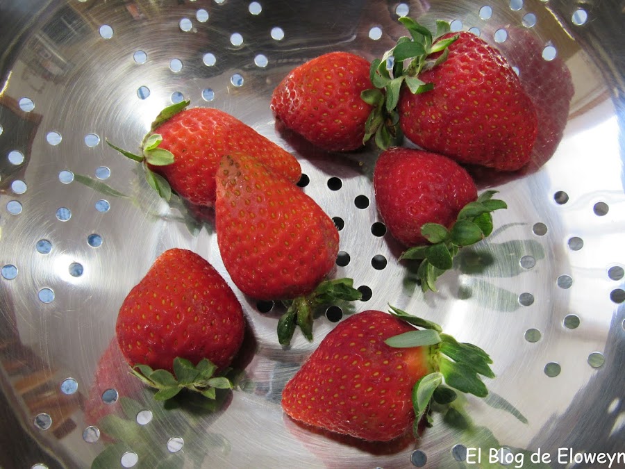 Ahora vamos con la receta. Primero tendremos que lavar bien las fresas. No les quitéis el rabito todavía.