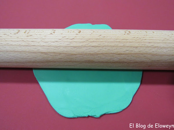 Una vez se haya solidificado el chocolate, vamos con los adornos. Hacemos una bola con uno de los trozos de fondant de colores. A continuación, extendemos la bola de fondant con un rodillo hasta hacer una lámina fina. Hacemos lo mismo para el resto de fondant de colores que queramos usar.