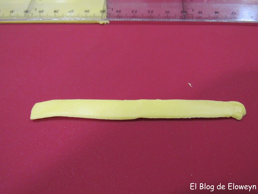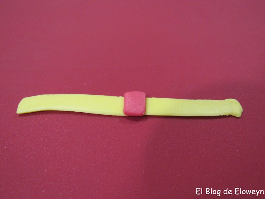 Pulir los lados que hemos cortado. Cortar rectángulos para los adornos. Ponemos el rectángulo sobre lo que será la banda y presionamos un poco para pegarlo. No hace falta nada más.