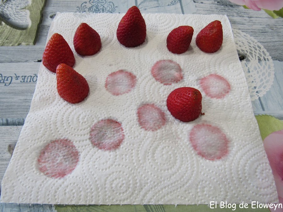 Al cabo de un rato, las volvemos a cambiar de posición, para que sigan secándose las bases de las fresas.