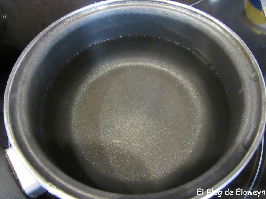 Vigilad de no poner demasiada agua, ya que cuando comience a hervir, no nos interesa que caiga dentro del chocolate. Ya os he dicho antes que si cae una sola gota de agua dentro puede estropearlo. Ponemos a hervir el agua.