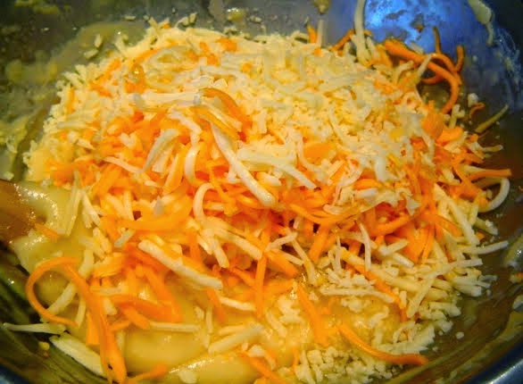 Añadimos ahora el queso, guardamos un poco para espolvorear por encima al final,