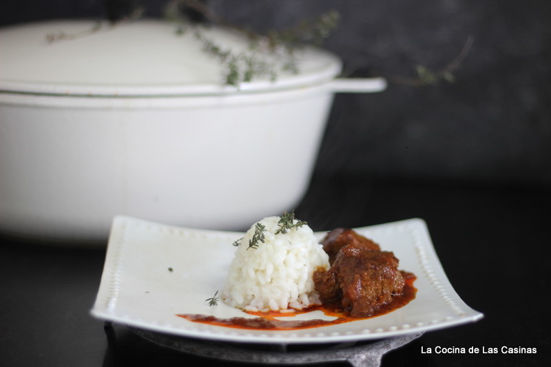 Acompaña de Arroz Blanco, la receta la tienes aquí. Finalmente espolvorea con perejil picado, tomillo o lo que tengas por ahí.