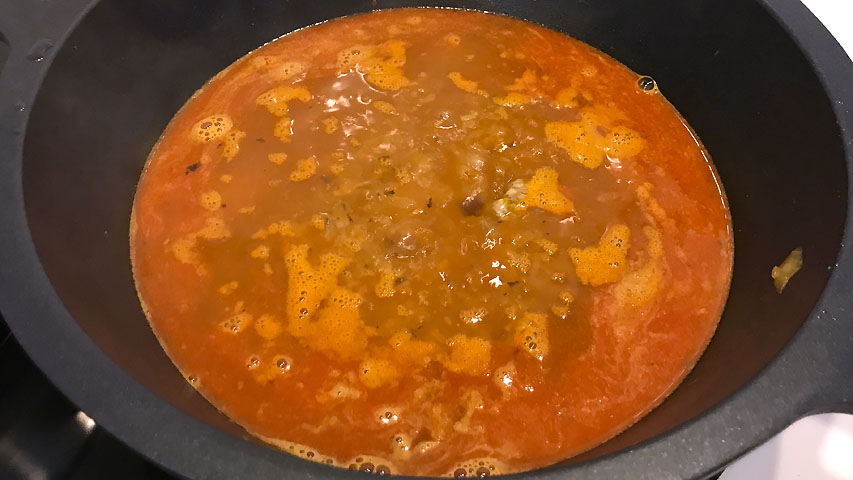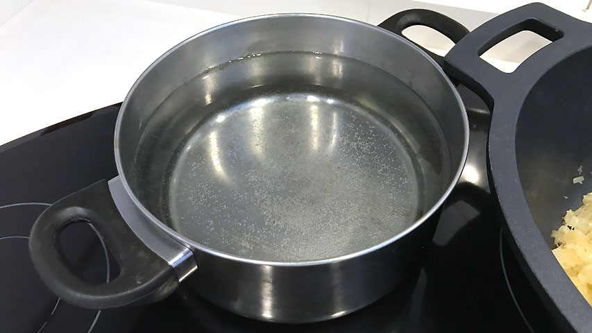 Voy calentando agua en una cazuela en otro fuego. En este agua haré la pasta y la usaré para cocer el goulash.