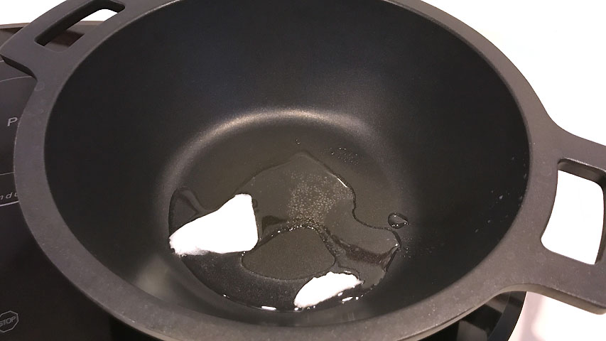Prepara un caldero con la manteca de cerdo a fuego medio.