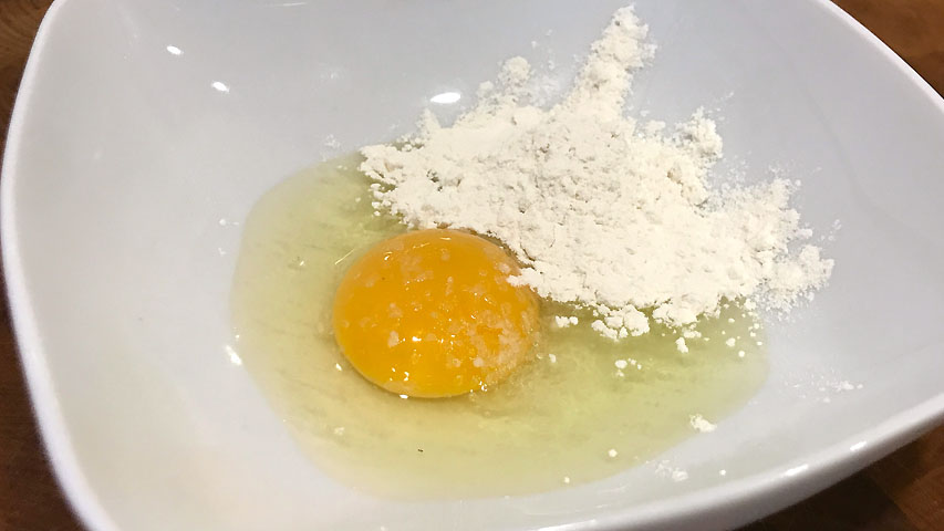 Para preparar la pasta de acompañamiento (csipetke) se bate un huevo con harina. He puesto las cantidades de referencia pero lo hago a ojo.