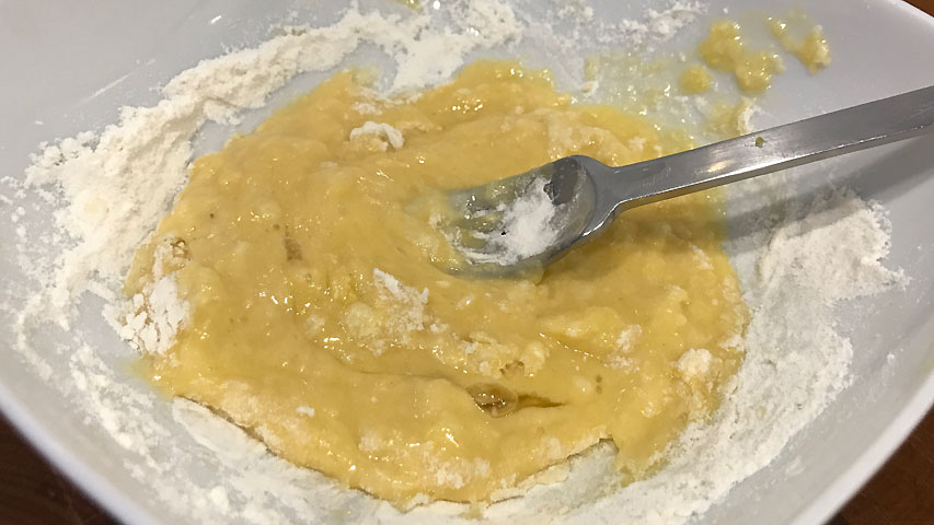 Voy mezclando y añadiendo harina poco a poco hasta que obtengo una masa consistente.