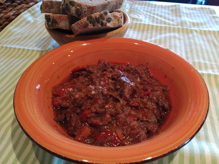 Al final ya la hice e investigué un poco su origen, que como digo surgió entre los pastores que debían recorrer muchos kilómetros, lo preparaban en un caldero típico, el bogracs, y lo transportaban, alargandolo con agua a medida que pasaban los días. Originalmente se hacía con buey, en mi caso ternera que es mucho más asequible...lo que sí que no se puede dejar de lado es la cocción lenta y tranquila. Os dejo la receta, en casa nos encantó, y podéis añadir más agua o menos en función del tipo de plato que queráis hacer.