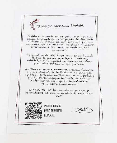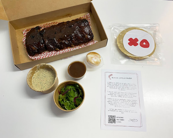Nosotros hemos pedido dos veces, hemos probado los tacos de costilla ahumada y la verdad es que nos dejaron sin palabras, la carne está extremadamente tierna (puedes separarla del hueso fácilmente con la mano, tirando muy suave de ella) y simplemente las costillas ya estarían muy buenas, pero al seguir las instrucciones que vienen junto con el plato y montar los tacos, la mezcla de sabores en la boca es espectacular. Si os animáis a pedir alguno de sus platos, éste debe ser uno de ellos, os garantizamos que no os vais a arrepentir.