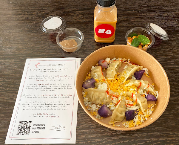 Se pide a través de la app Glovo y de momento sólo funciona en algunos barrios de Madrid, aunque cada vez van ampliando más las zonas de reparto, al igual que los platos de la carta, que va cambiando cada cierto tiempo.