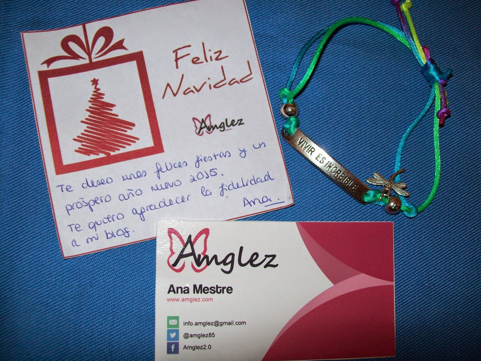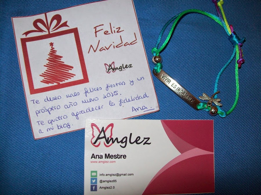 Justamente el día 5 de enero, fue un regalo de Reyes inesperado, me llego una carta con una felicitación y una pulsera muy chula, creo que las hace ella, de su parte. Podéis verlo en la foto. La pulsera lleva un mensaje precioso, "vivir es increíble". Al parecer y como premio ha mandado estas felicitaciones a sus top comentaristas y yo he sido una de ellas.
