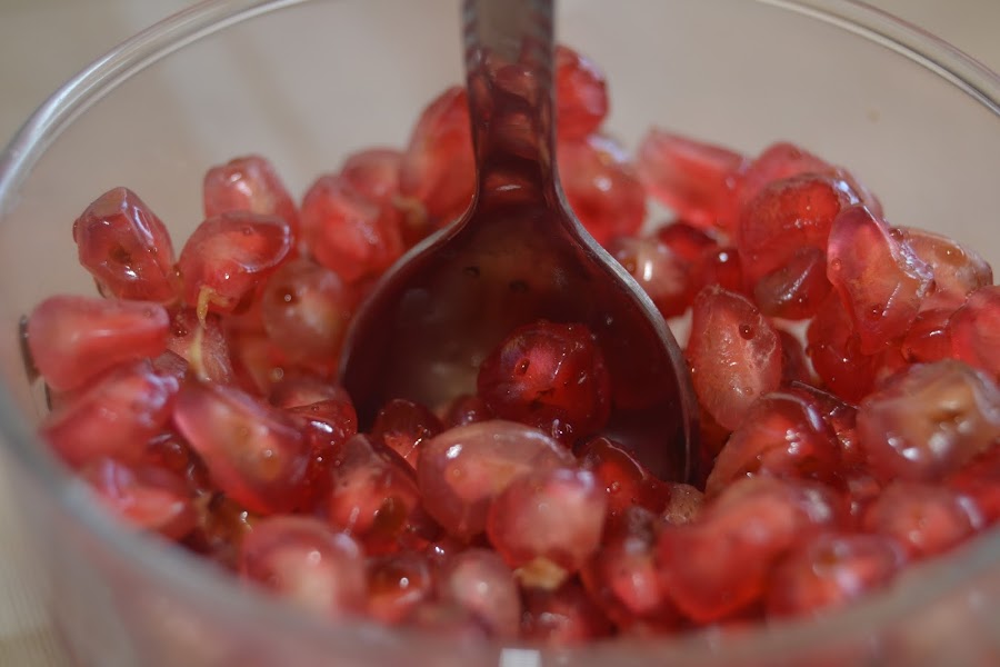 Yo empiezo el año con un postre que no necesita mas que el tiempo de pelar las granadas, porque lo que es preparación lleva poca. Si os gustan las fresas con vinagre seguro que las granadas preparadas así os van a sorprender. El vinagre potencia su sabor y rebaja la acidez de esta fruta que tenemos que consumir mas a menudo ya que sus propiedades son múltiples y con un alto poder antioxidante.