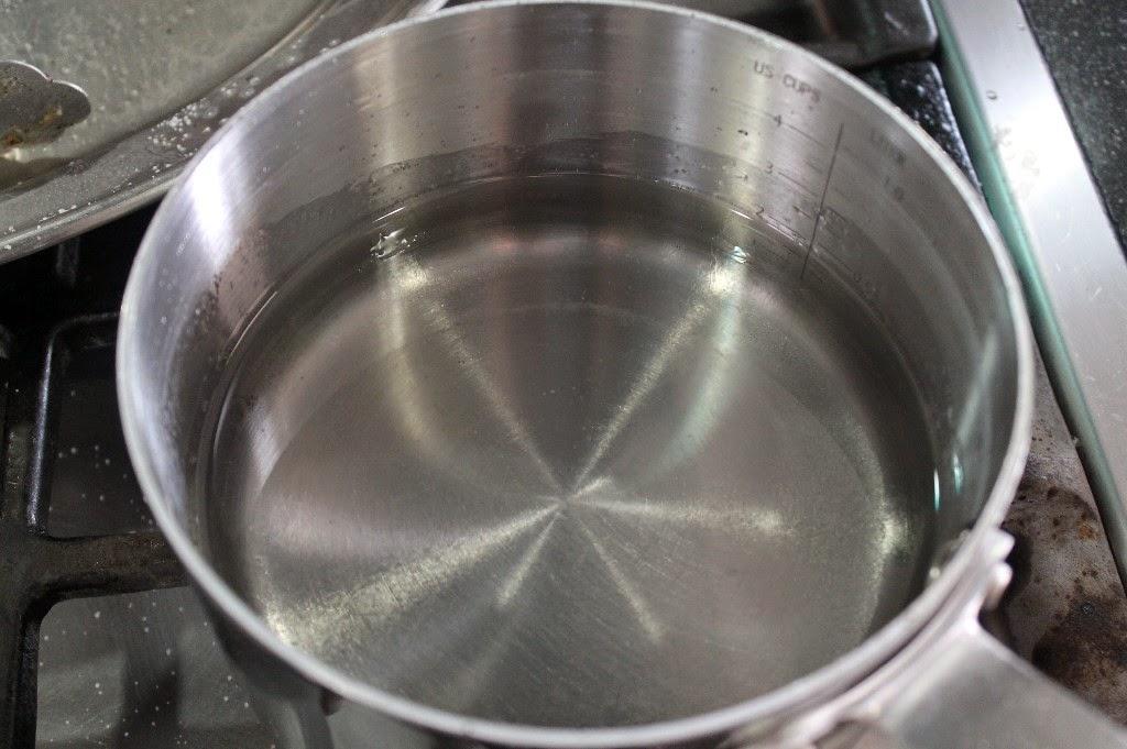 Se prepara un almíbar mezclando el agua y el azúcar a punto de hebra, eso quiere decir que unos 4 minutos cuando empieza a hervir.