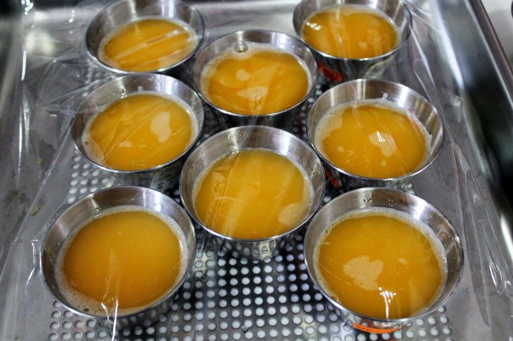 Llenamos nuestros moldecitos dejando un dedo vacios, los colocamos en una bandeja al baño maría y los tapamos.