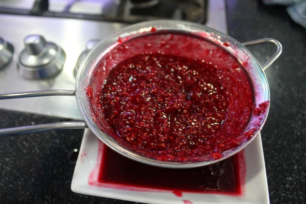 Si queréis podéis triturarlo con el brazo batidor y colar por un colador de manera que no salgan pepitas de las frambuesas.