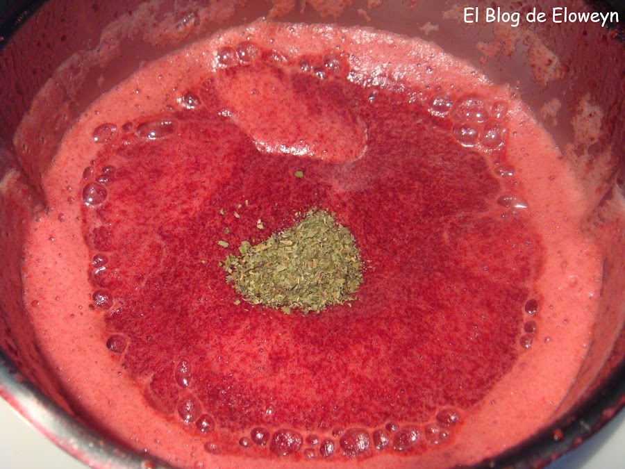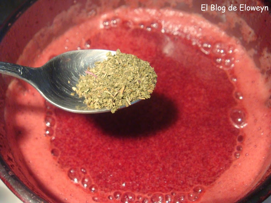Había visto un montón de recetas de granizados con menta, y por norma general, meten la fruta, el azúcar, la menta, el agua y el hielo y ¡ale!: !Listo!. Pero en mi caso, pensé que igual quedaría mejor si, en lugar de meterle la menta a palo seco, me dedicaba a hacer una especie de infusión con las cerezas, el azúcar, el agua y la menta. Más que nada, para que le diese más sabor. ¿Os he dicho que me encanta la menta? jajaja.