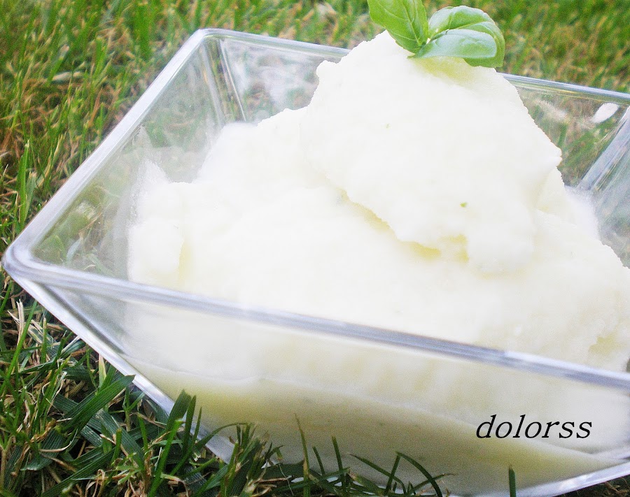 Poner en el congelador en una bandeja poco profunda, al cabo de un par de horas remover bien con un tenedor y servir.