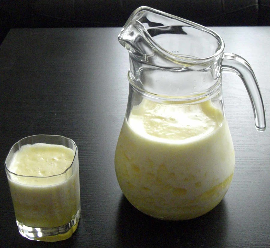 Para esta deliciosa y revitalizante bebida, lo único que hay que hacer es pelar y cortar la piña en trozos, colocarlos en el vaso de la batidora y cubrir los trozos de piña con agua. No os recomiendo usar leche en este batido, puesto que al tratarse de una fruta con tanto ácido, es muy fácil que se corte y se os quiten las ganas de hacer batido, al menos en una buena temporada. Si de cualquier modo queréis intentarlo, mezclar agua y leche, empezando a batir la piña sólo con agua e incorporando poco a poco la leche sin dejar de batir.