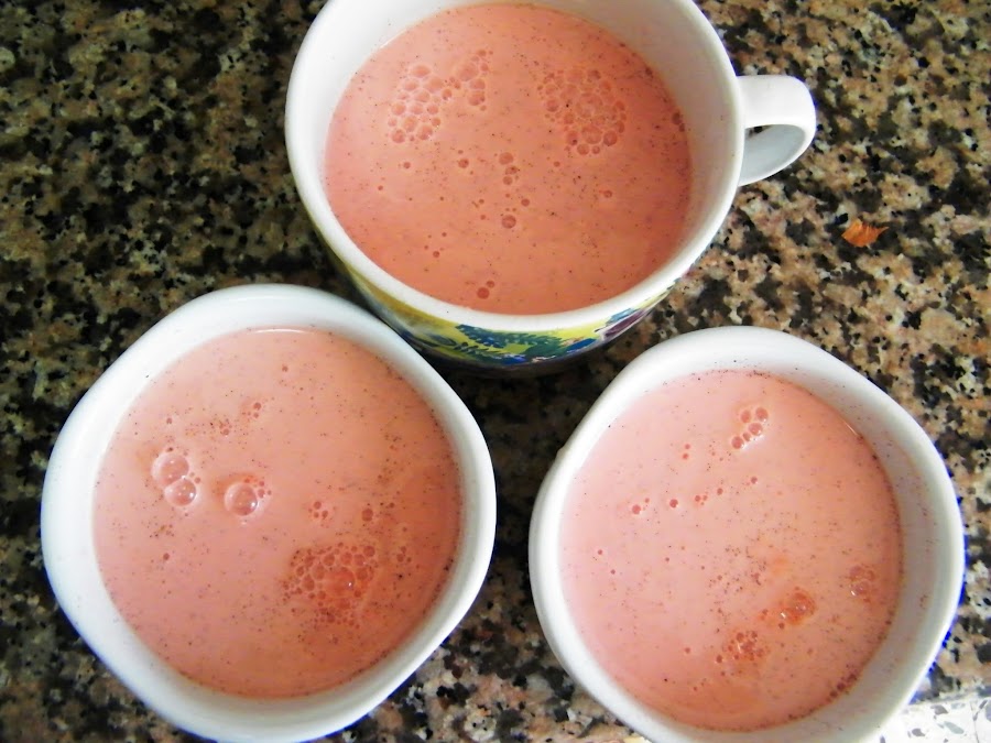 Ocional: 3 hojitas de menta. Yo no he añadido azúcar, pero si os gusta más dulzón, podéis añadir sirope de agave, miel, edulcorante, azúcar moreno... al gusto.