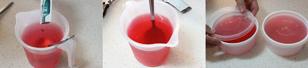 Diluimos el sobre en un litro de agua, lo movemos bien hasta que todo esté disuelto. Lo echamos en cubiteras o recipientes pequeños y lo llevamos al congelador hasta el día siguiente.