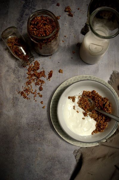 Como cada mes, nuestra querida Esther de @cocinandosabores nos reta en IG ha hacer una receta sencilla, casera y que demuestre que lo que compramos podemos hacerlo en casa sin tantos conservantes, colorantes y demás. Recetas sencillas y saludables. Este mes nos ha invitado a hacer una granola casera y ésta es nuestra aportación.