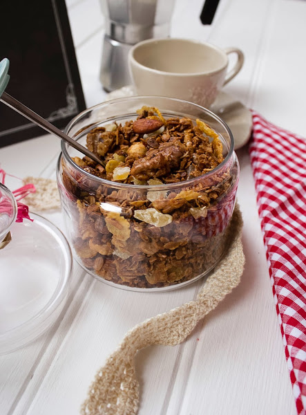 Esta granola con yogur y frutas resulta un desayuno delicioso, rápido de preparar y muy equilibrado....y por supuesto con una taza de algo calentito ya tienes la mañana cubierta y podrás empezar el día con energía. Pues vamos a preparar nuestra granola, la podemos guardar en un bote hermético y así por las mañanas la podemos combinar con lo que queramos.
