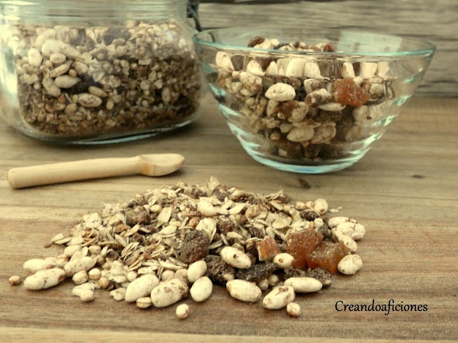 La granola se ha convertido en mi desayuno desde hace ya unos años, por lo que variar un poco con los ingredientes es lo que hago de vez en cuando. Los frutos secos que vamos a utilizar son al natural no están tostados y utilizaremos los que más nos gusten y en la proporción que queramos, también los podemos poner enteros o picados. Lo mismo que las frutas deshidratadas como pasas, orejones, dátiles, arándanos, etc. en la proporción y según nos gusten. Empezamos.