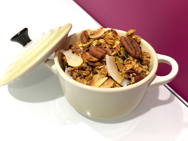 8. Colocamos la granola en un tarro hermético y ya la tenemos lista para desayunos, meriendas y tentempiés.