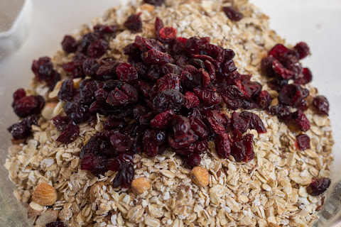 -1/2 taza de cranberries (reemplazables por pasas, damasco, o cualquier otro fruto deshidratado)