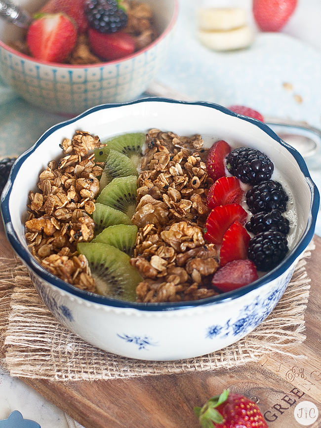 Cuando llega el verano hay muchas veces que no sé qué prepararme para desayunar y creo que he encontrado la respuesta definitiva. Me he hecho adicto a la granola desde que la probé hace unos meses. Quise prepararla de forma casera y la verdad es que no tienen nada que ver, principalmente porque puedes añadirle lo que quieras para hacerla mucho más deliciosa y personal.