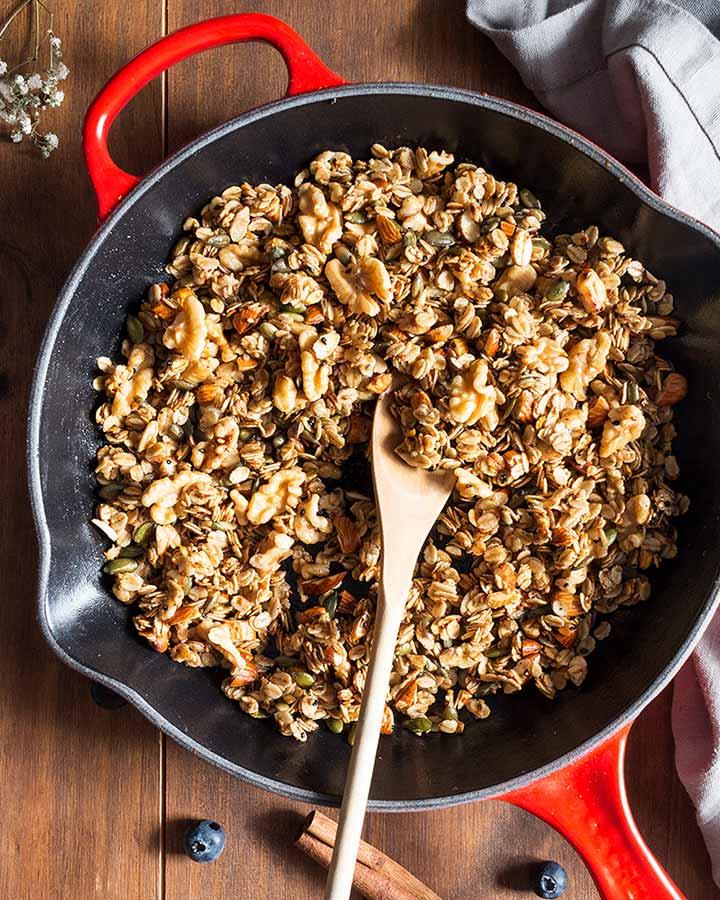 Granola en sartén, disfruta de la granola casera sin encender el horno y en solo 15 minutos.