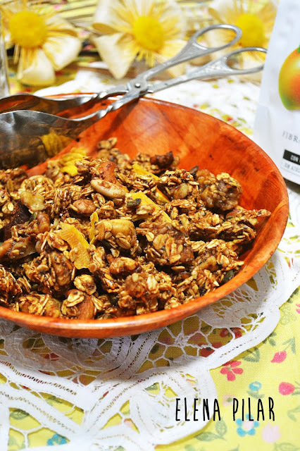 Que conste que mi-granola-favorita sigue siendo mi preferida por encima de todas las cosas, pero esta está muy buena también, muy lograda y merece su debido hueco en este mi blog. Es menos dulce, pero tiene un sabor súper interesante, que estoy segura de que a muchos de vosotros os gustará. Mi madre, sin ir más lejos, dice que prefiere esta a la que suelo hornear. Es cuestión de probar o de hornear las dos versiones, como he hecho yo en alguna que otra ocasión, y picotear de ambas ^_^.