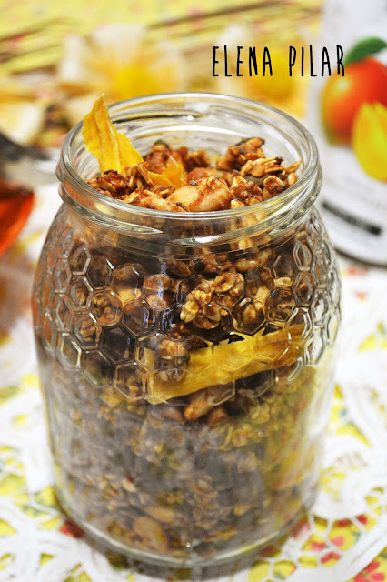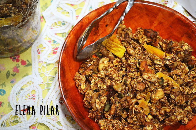 A día de hoy, mi favorita sigue siendo la granola de almendras y miel, cuya receta tenéis en este blog. Es súper crunchy y adictiva, cargada de frutos secos tostados... Nos gusta tanto, que la preparo todas las semanas (a veces, no dura tanto, y a los cuatro días ya hay una nueva tanda en el horno).
