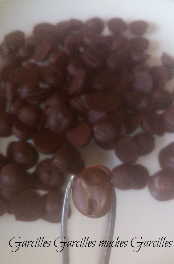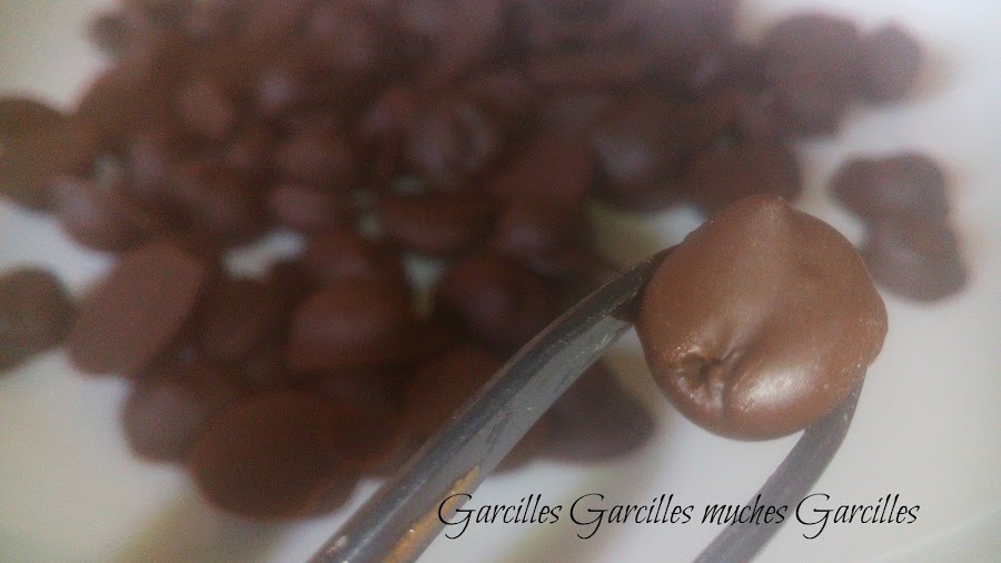 Ir sacando grano a grano del chocolate y ponerlo en el papel