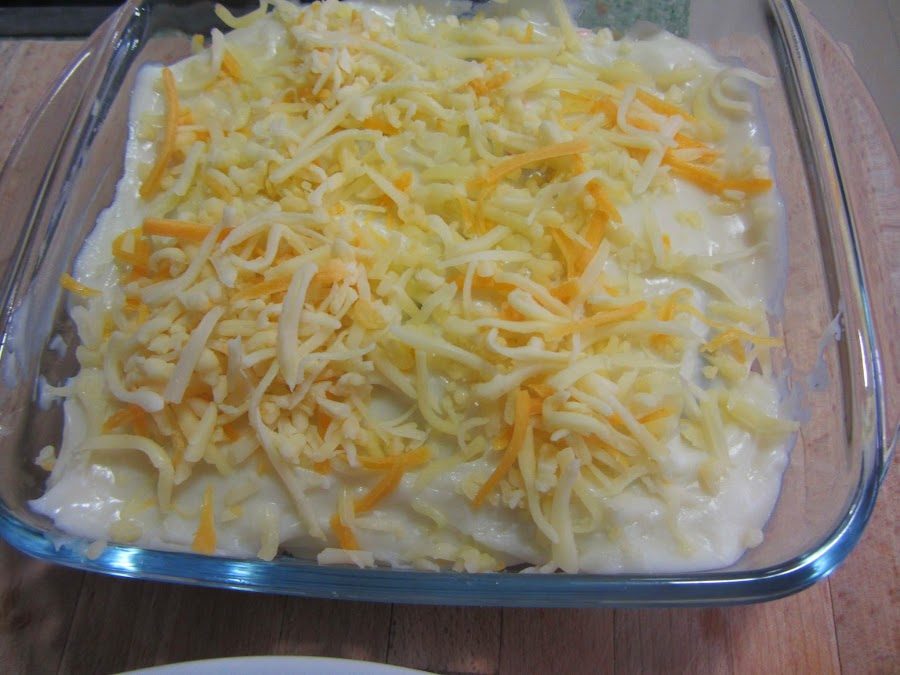 Y cubrimos todo con la bechamel, poniendo por encima el queso rallado.