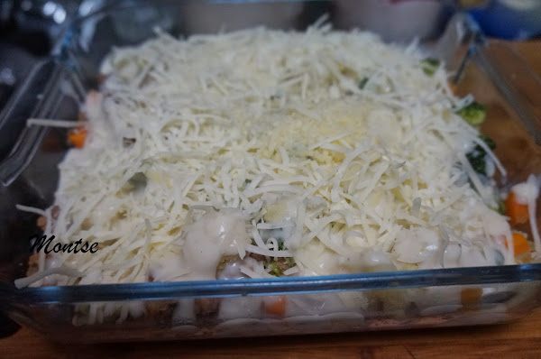 Prepararemos una bechamel AQUI y lo cubriremos, echamos queso rallado y lo metemos al horno hasta que esté dorado.