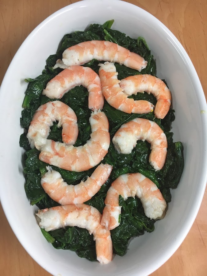 Si tenéis los langostinos crudos es el momento de rehogarlos con las espinacas, cortados en trocitos previamente. Yo los tenía cocidos (iba a hacer una ensaladilla rusa ilustrada) así que los reservé para después.