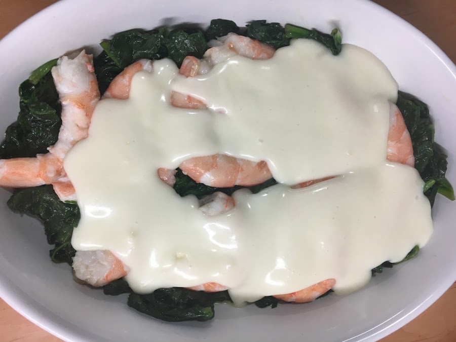 Se revuelve bien la salsa con la ayuda de una pizca de leche. Se vierte sobre las espinacas: