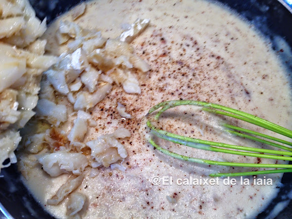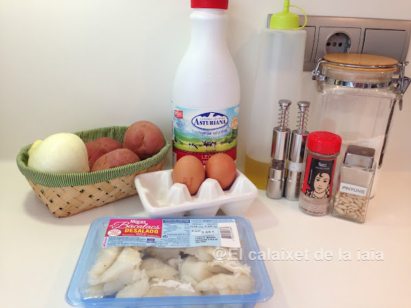Yo ésta ves he comprado el bacalao desalado y desmigado, `pero si lo compráis en trozo y salado aquí tenéis los pasos a seguir para desalarlo http://calaixetdelaiaia.blogspot.com.es/2015/04/como-desalar-el-bacalao-paso-paso.html