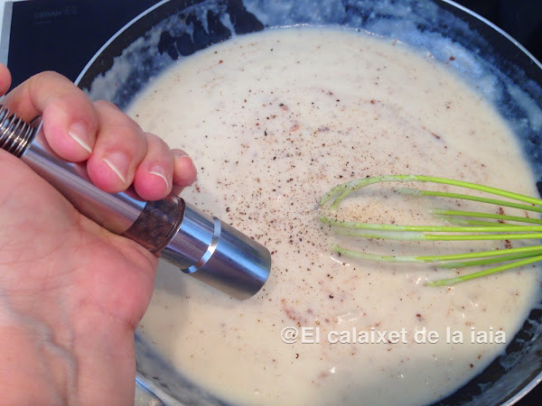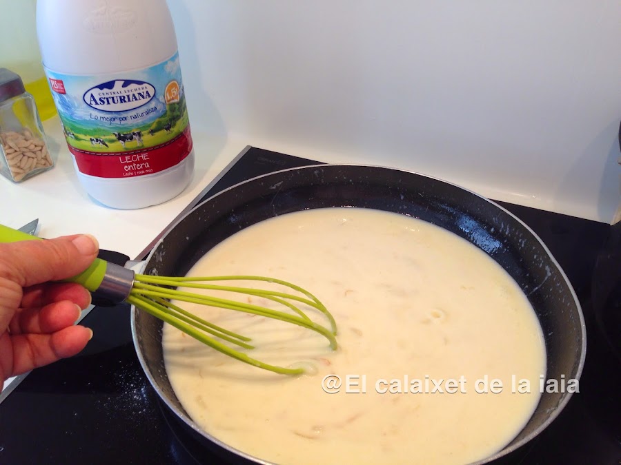 removiendo para que no se nos hagan grumos, en ésta ocasión no hace falta una bechamel muy espesa