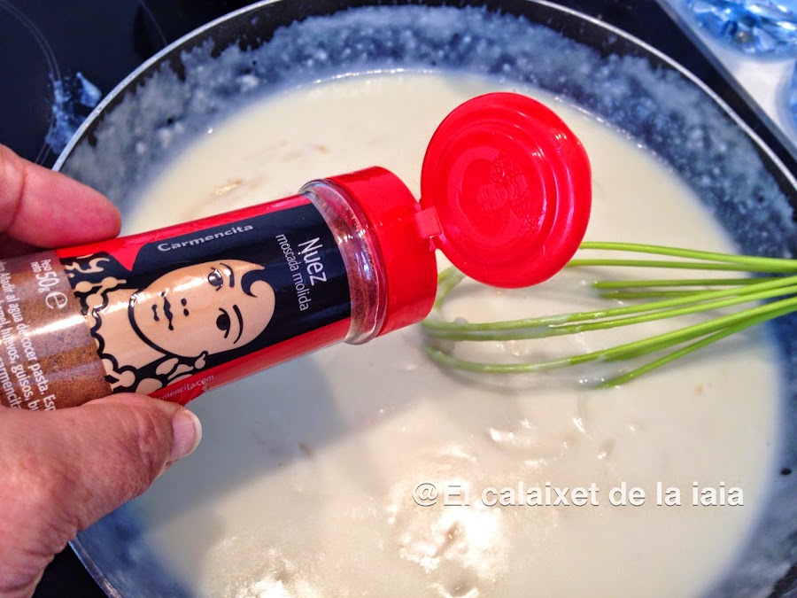 cuando esté a nuestro gusto añadimos la nuez moscada molida o rallamos una nuez