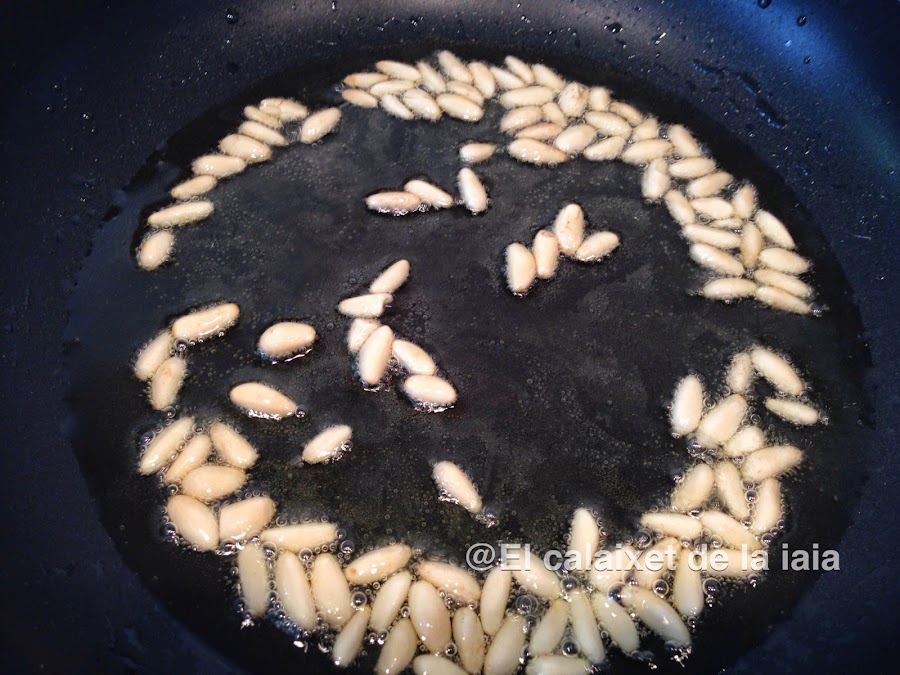 Pondremos el aceite a calentar, doraremos un poco los piñones y reservaremos.